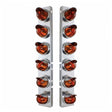 Stainless steel front air cleaner bracket with 12 amber glass watermelon lens and stainless steel visors for Peterbilt models. Not LED lights. Choose dark amber or amber glass lens from menu above.