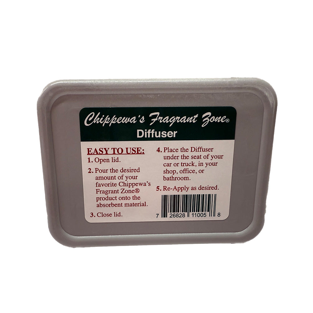 The perfect companion to the very popular Chippewa's Fragrant Zone Air Freshener, item 277056 , sold separately. This scented liquid air freshener is a driver favorite and comes in a variety of scents. This diffuser tin is made with a unique blend of material that was specifically designed for Chippewa's Fragrant Zone Air Frensher diffuser application.