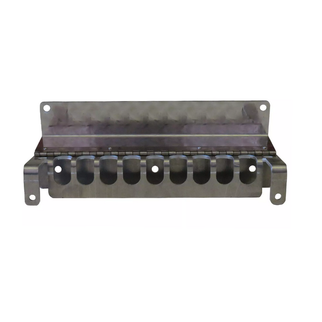 Aluminum load binder hanger with 12 slots, ideal for organizing and securing load binders or chains.