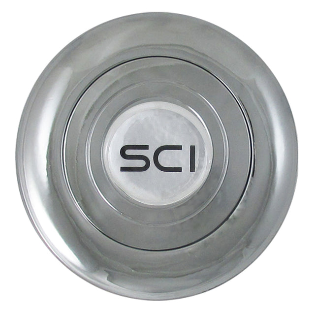 Chrome horn button for 3-hole bolt pattern steering wheel.