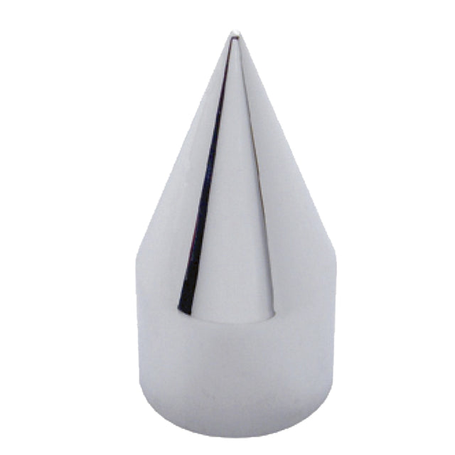 Chrome plastic. Spike style. Push on lug nut covers. 1-1/2" x 4"H. Sold individually.