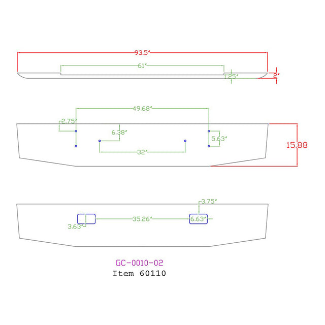 NOTE: Semi truck bumpers are not returnable. Ordering of this bumper constitutes acceptance of the Alternate View drawing. For more information call 866-446-9280.
