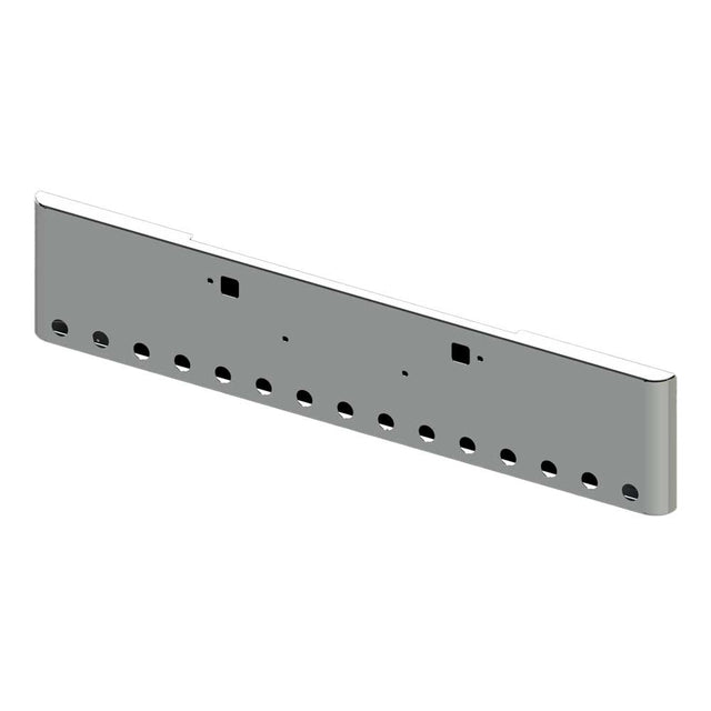 20" rolled end chrome plated carbon steel bumper with fifteen 2" light and tow hole cutouts. Fits Peterbilt 365, 367, 388, 389, 567 and Kenworth W990 models. Made out of chrome plated 10 gauge carbon steel. Chrome plated on front and back side. Standard mount.