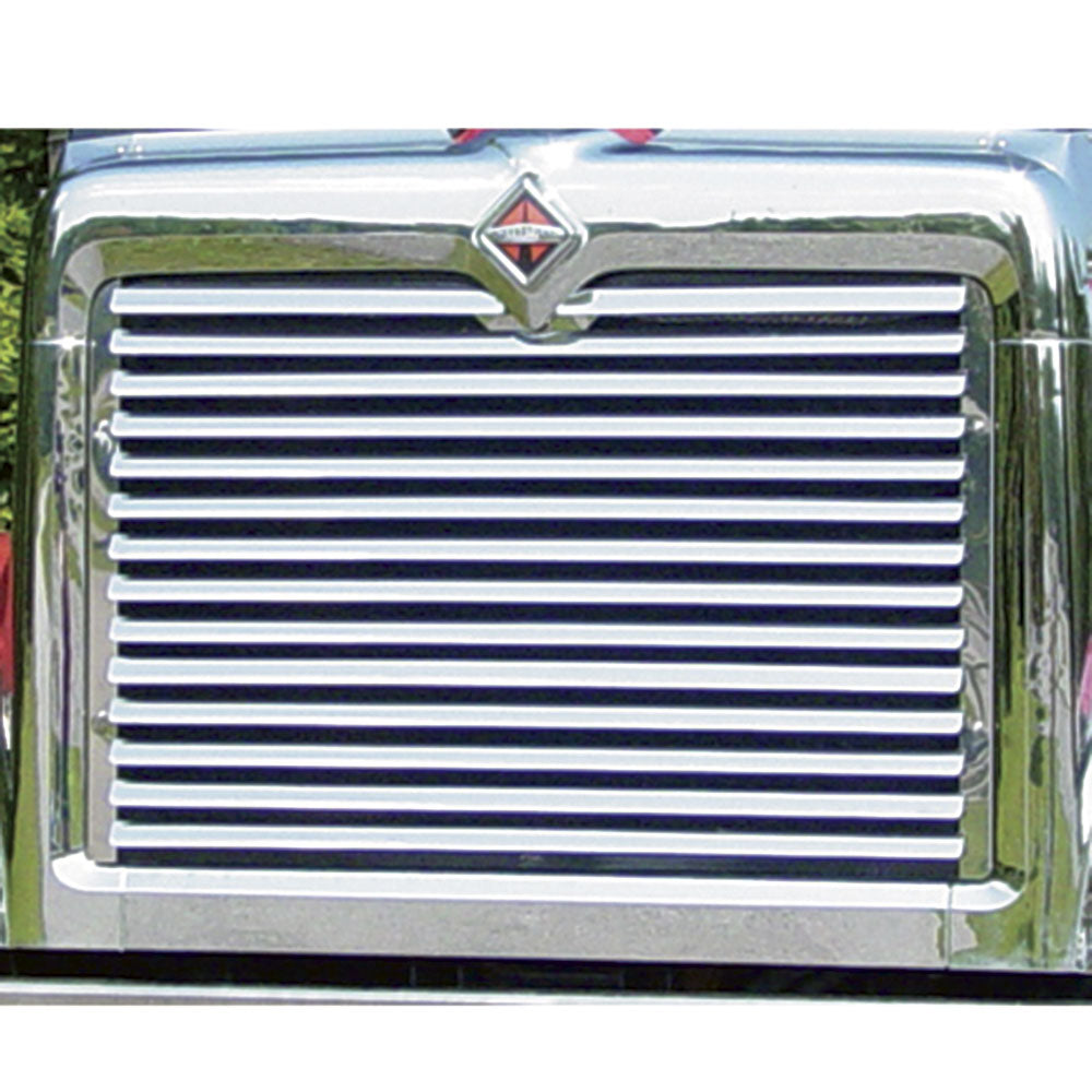 Change the look of your grill with a stainless steel grill kit. Kit includes 14 louver-style grill bars and side trim pieces. Fits International 9900i, 9900ix, 5900i models.