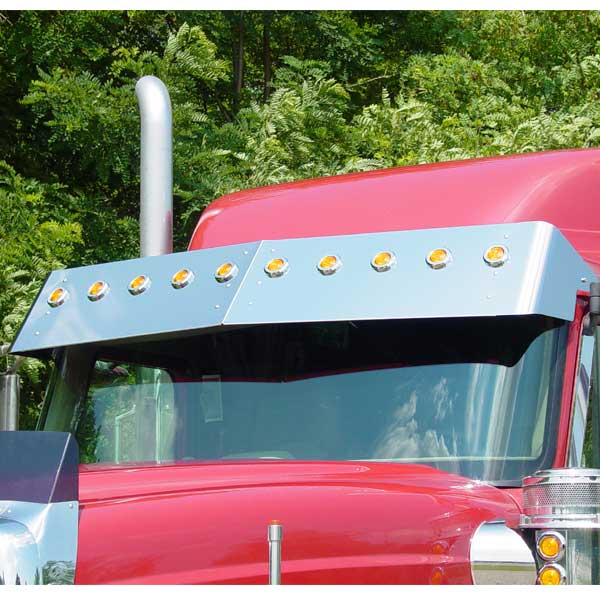 Beat the heat and light up the night with a 15" stainless steel visor. Features ten 2" round light cut outs. Mounting hardware included. Fits International i-Models with Hi-Rise or Sky-Rise Pro sleeper.