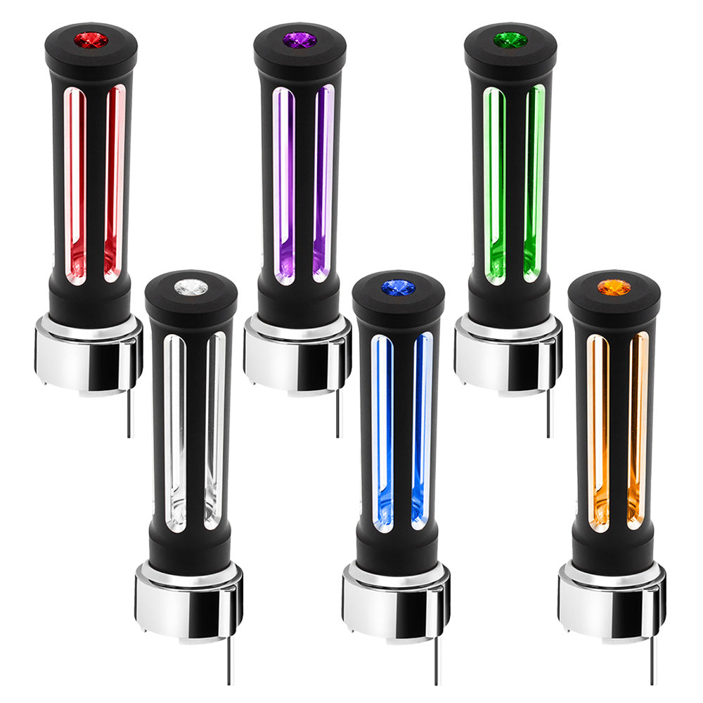 Bring bold style and vibrant lighting to your cab with this Thread-On Sonoma Style Gearshift Knob. Designed for 9/10 speed Eaton Fuller transmissions, this high-end shift knob features a zinc die-cast adapter and unique LED lighting embedded at the base. Crafted from CNC-machined aluminum and topped with a premium European crystal, it"™s the perfect fusion of function and flair.